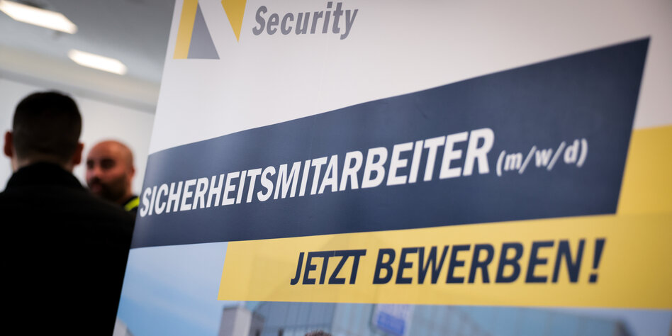 (IMG) Bild: Äh, hier fehlt echt ein Werbeslogan: Werbebanner eines Sicherheitsunternehmens bei der Jobbörse der Sicherheitsbranche