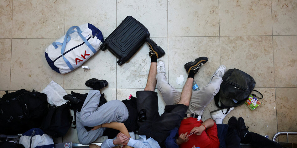 (IMG) Bild: Berlin, 19. Juli: gestrandete Fluggäste nach Computerausfällen am Flughafen BER