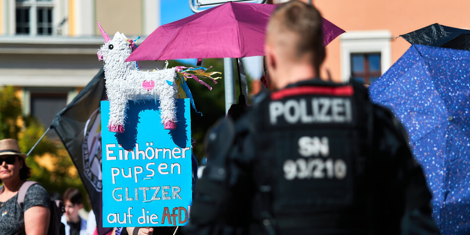 (IMG) Bild: Anti-AfD-Protest beim Christopher Street Day in Bautzen Anfang August