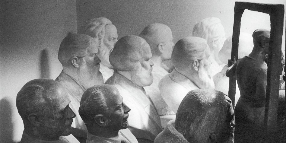 (IMG) Bild: Ein untergegangenes Land: abgeräumte Büsten im Gebäude der SED, Februar 1990