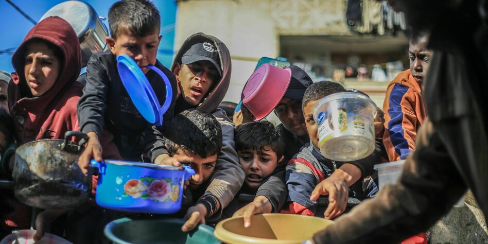 (IMG) Bild: Opfer des Kriegs, Opfer des Hungers: Essensausgabe an palästinensische Kinder im Gazastreifen