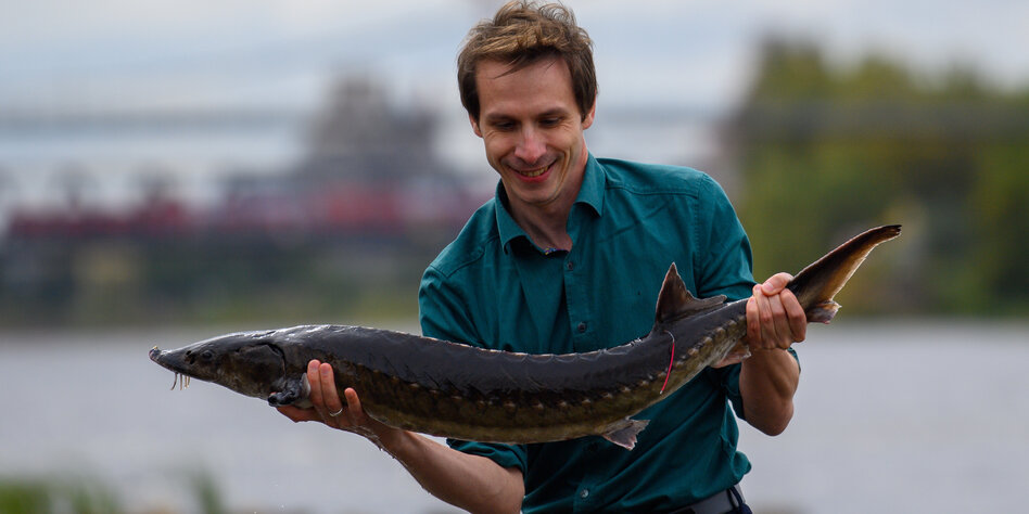 (IMG) Bild: Hoffnungsvoll: Ein Stör wird zur Wiederansiedlung in die Elbe eingesetzt