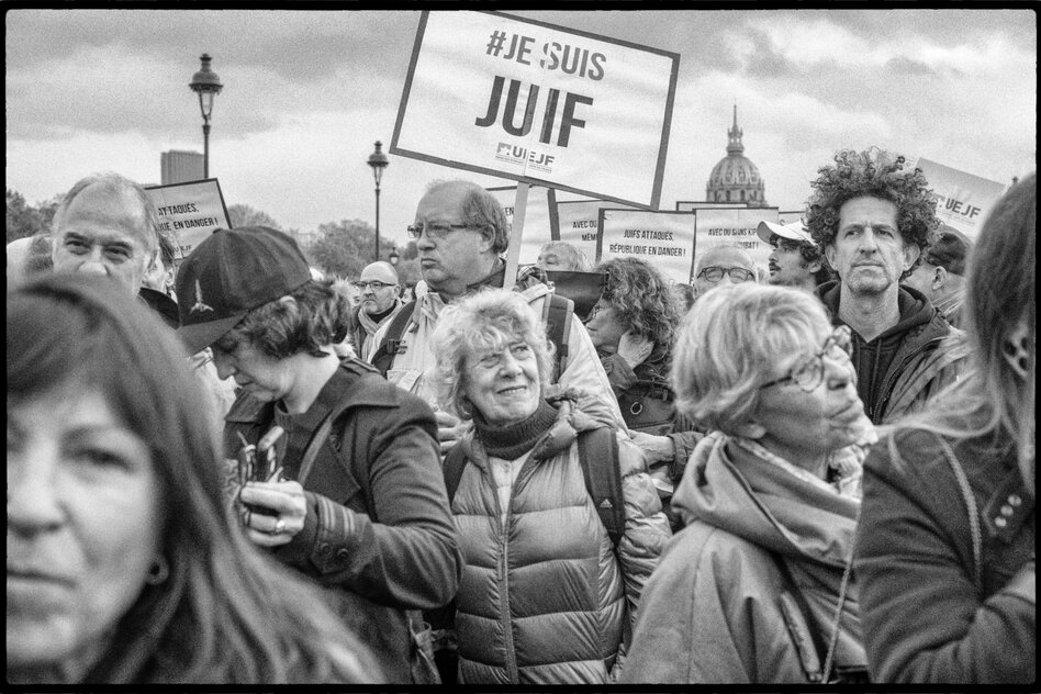(IMG) Bild: Menschen bei der Demonstration gegen Antisemitismus im November 2023. Doch wie reagiert man, wenn Marine Le Pen mit demonstriert?