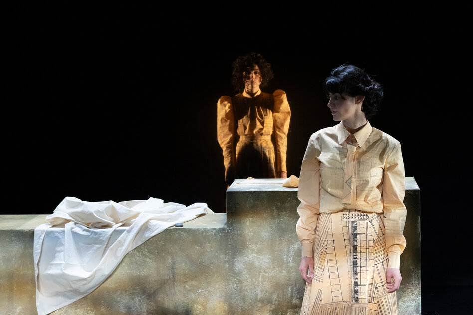 (IMG) Bild: Maribel Dente, Anja Bothe (im Hintergrund) in „Was bleibt. Das Leben der Familie Cohn“