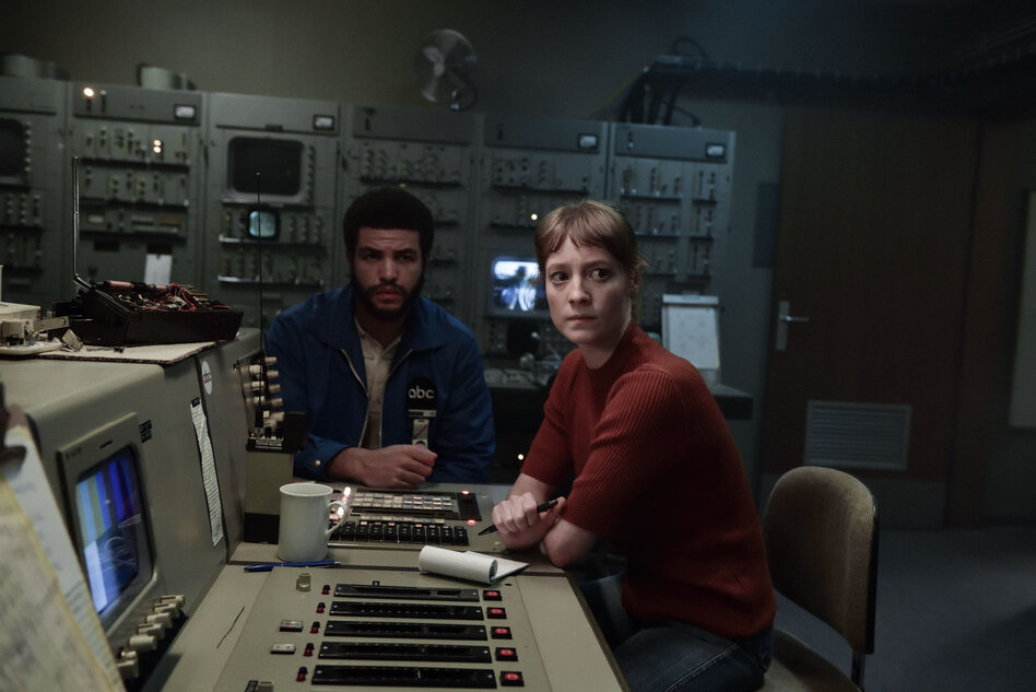 (IMG) Bild: Das Fernsehstudio wurde genau rekonstruiert: Marianne Gebhardt (Leonie Benesch) und Carter (Marcus Rutherford) in „September 5“