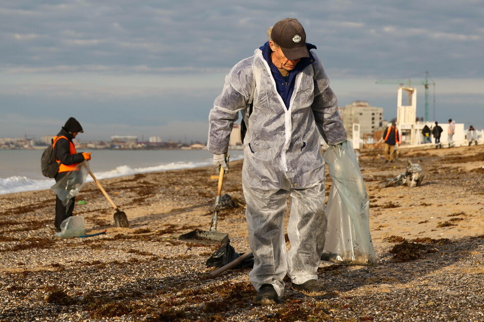 > Schwarze Meer. Freiwillige beseitigen die Folgen der Ölpest vor Russlands