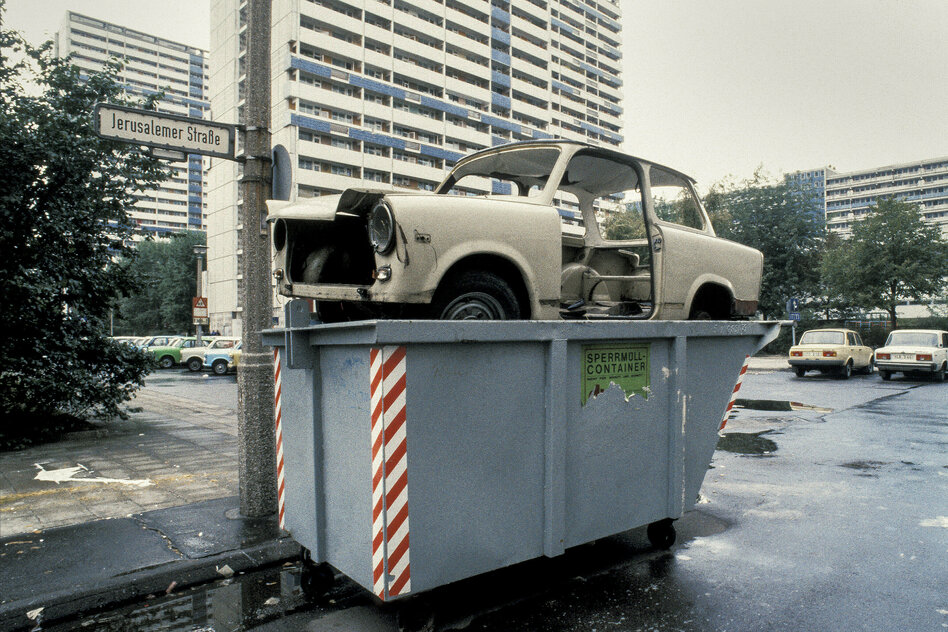 (IMG) Bild: Schlimmes Schicksal eines Trabbis. Das könnte auch der Autoindustrie in Europa passieren, wenn sie Trump gewähren lässt