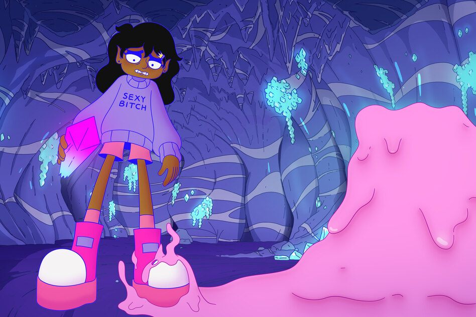 (IMG) Bild: Szene aus „Lesbian Space Princess“: Saira ist lesbisch und Prinzessin auf dem Planeten Clitopia
