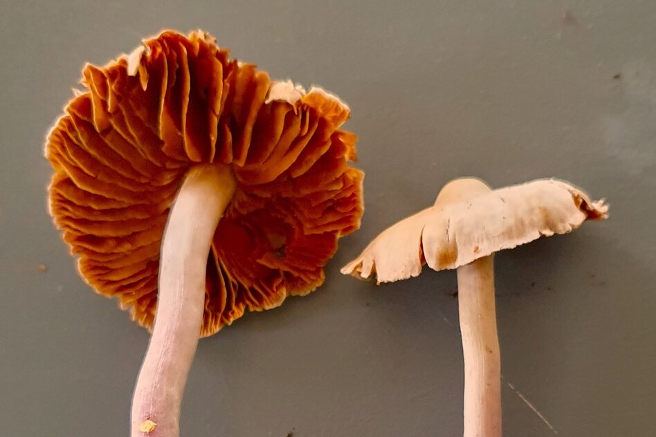 Pilze begegnen: Hut und Stiel, aus dem Waldboden hervorragend etwa.