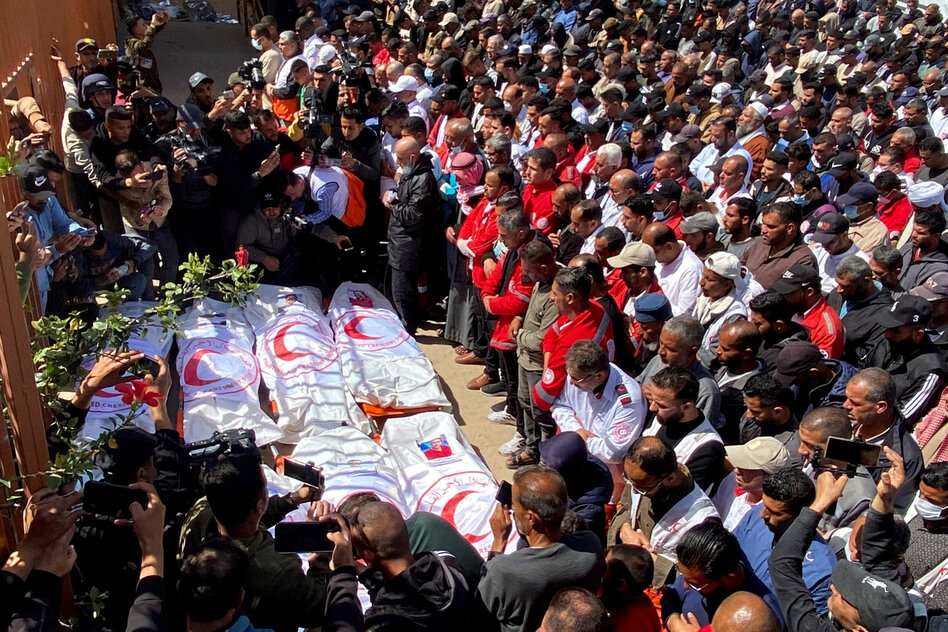(IMG) Bild: Palästinenser betrauern den Tod der 15 getöteten Sanitäter des Roten Halbmonds