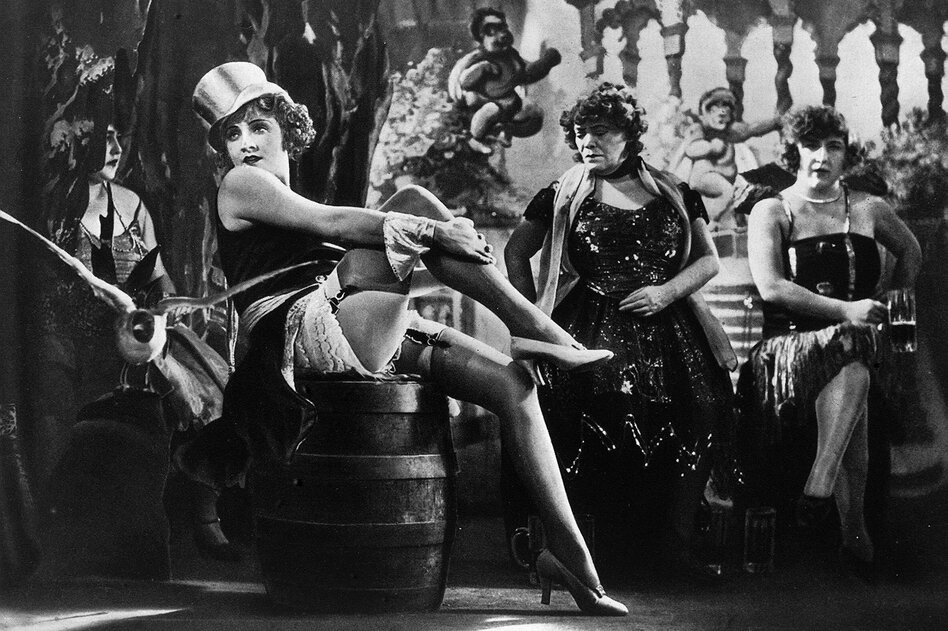 Professor Rath und die Kinogäste in Zylinder, seidenen Strümpfen und