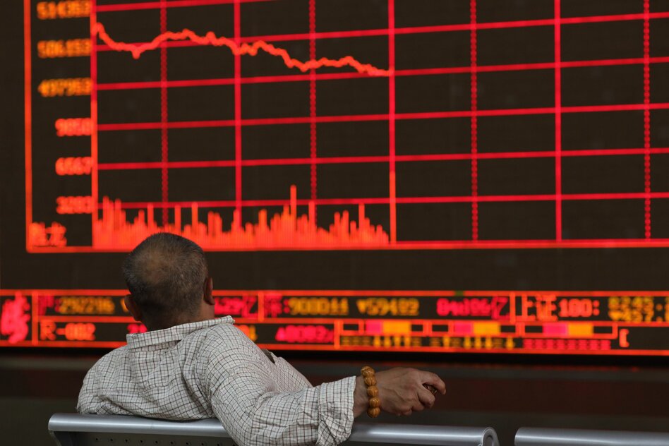 (IMG) Bild: Jetzt geht’s abwärts: Ein chinesischer Investor beobachtet, wie der Shanghai Composite Index auf einer Digitalanzeige fällt