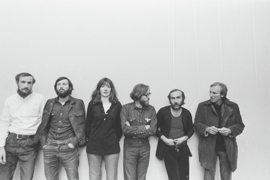 (IMG) Bild: Raša Todosijević, Zoran Popović, Marina Abramović, Gera Urkom, Era Milivojević, Neša Paripović (von links nach rechts) im SKC 1973