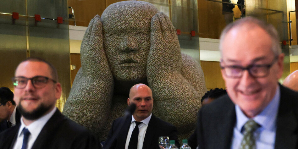 große Halle mit den „Zwei Menschen“ verlegt. Bei dem Mammutverfahren geht
