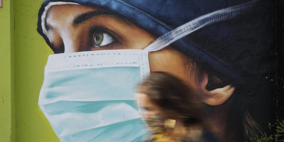 (IMG) Bild: Das Motiv einer Krankenschwester an der Hauswand: In Mailand ist die Lage derzeit besonders kritisch