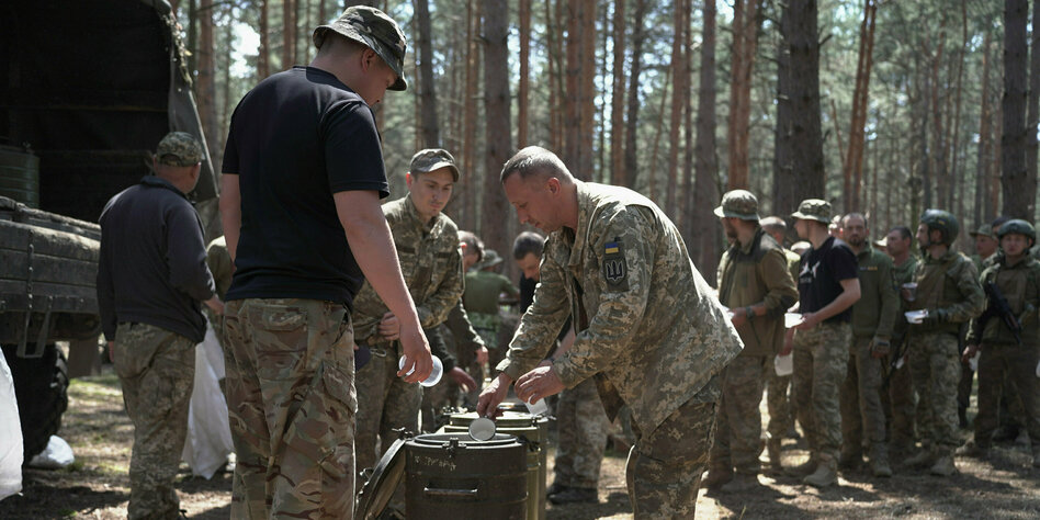(IMG) Bild: Ukrainische Soldaten bei der Essensausgabe