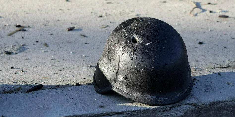 (IMG) Bild: Grenzen des Pazifismus? Helm eines ukrainischen Soldaten in Kiew