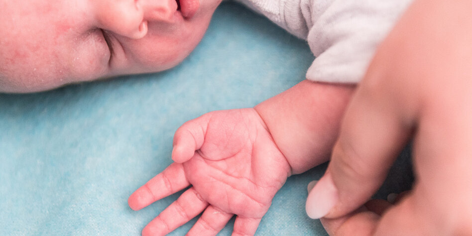 (IMG) Bild: Eine Mutter hält die Hand eines wenige Tage alten Kindes