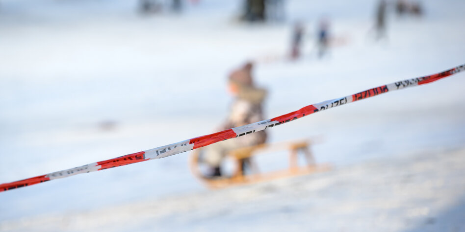 (IMG) Bild: Rodeln während der Pandemie: Absperrband im Hamburger Schanzenpark am vergangenen Samstag