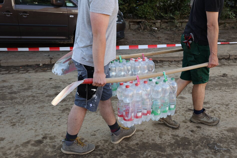 (IMG) Bild: Von Krisen lernen: Zum Kollapscamp kommen auch Freiwillige der Aufräumarbeiten der Ahr-Katastrophe, hier Helfer im Juli 2021