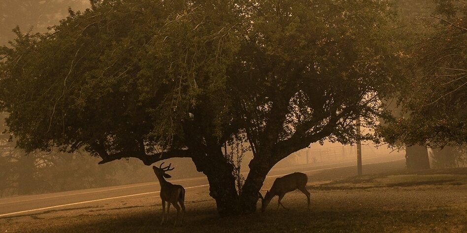 (IMG) Bild: Rehe nahe einer kalifornischen Stadt, die durch einen Waldbrand im August großteils zerstört wurde