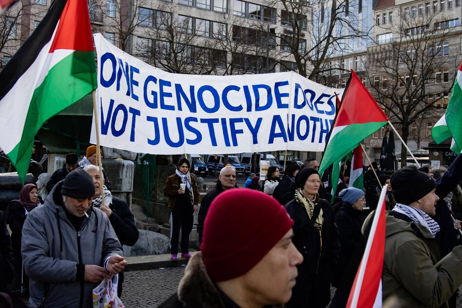(IMG) Bild: Der Begriff Genozid wird immer wieder bei pro-palästinensischen Protestveranstaltung benutzt, wie in Berlin Februar 25
