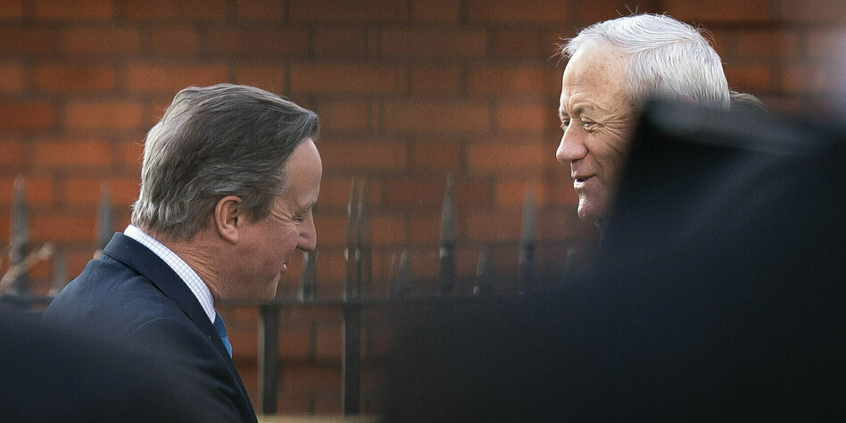 (IMG) Bild: London am Mittwoch: Benny Gantz (r.), Mitglied des israelischen Kriegskabinetts, mit dem britischen Außenminister David Cameron