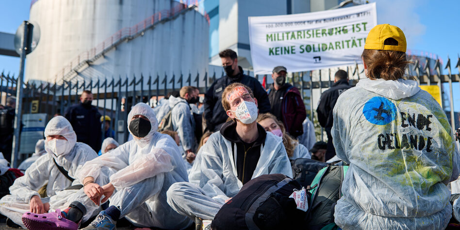 (IMG) Bild: Sitzblockade gegen russische Kohle vor dem Heizkraftwerk Reuter West
