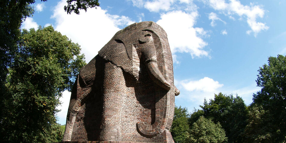 Backstein-Mahnmal in Form eines Elefanten erinnert an das koloniale Erbe