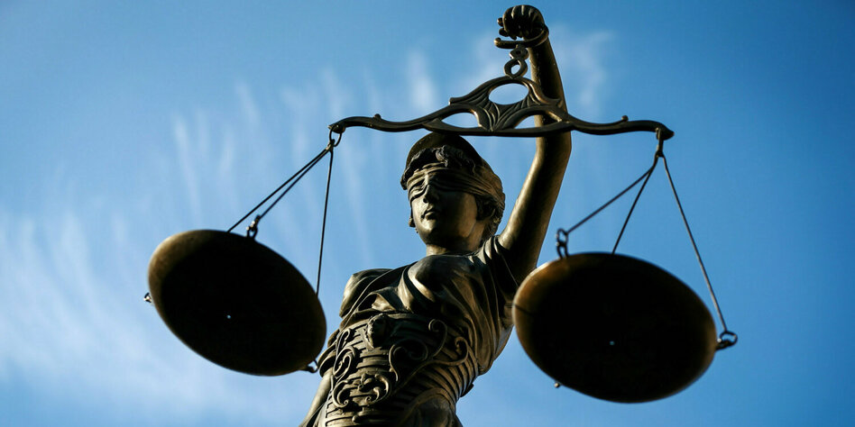 (IMG) Bild: Hat das Sylt-Video nicht gesehen: Eine Statue der Justitia hält eine Waage in der Hand