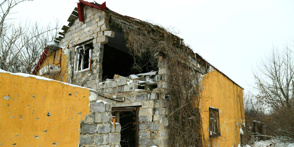 (IMG) Bild: Beschädigtes Haus in Vesyoloye: Leidtragende sind die Menschen in den Konfliktregionen