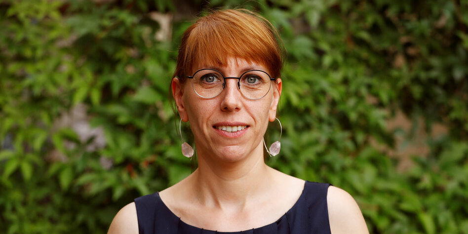 (IMG) Bild: Vor grünem Hintergrund und bei den Grünen: die Politikwissenschaftlerin Katja Meier