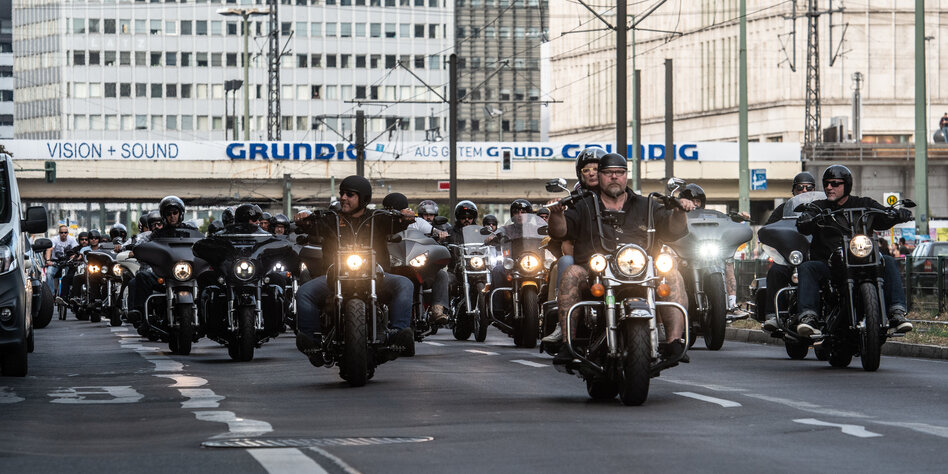(IMG) Bild: Bremens Innensenator wäre sie gerne los: Hells Angels, hier bei einer Demonstration 2018 in Berlin
