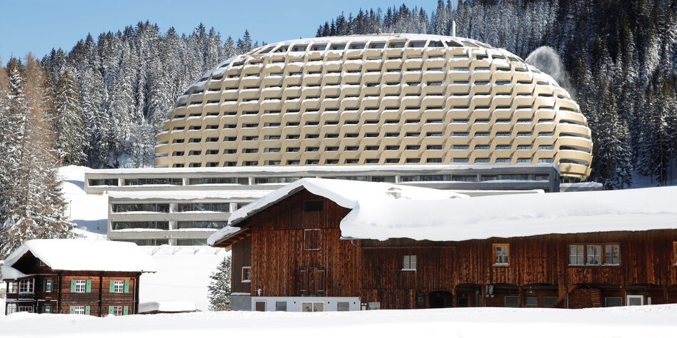 (IMG) Bild: Immerhin Schnee hat es in Davos: Blick aufs Hotel Intercontinental