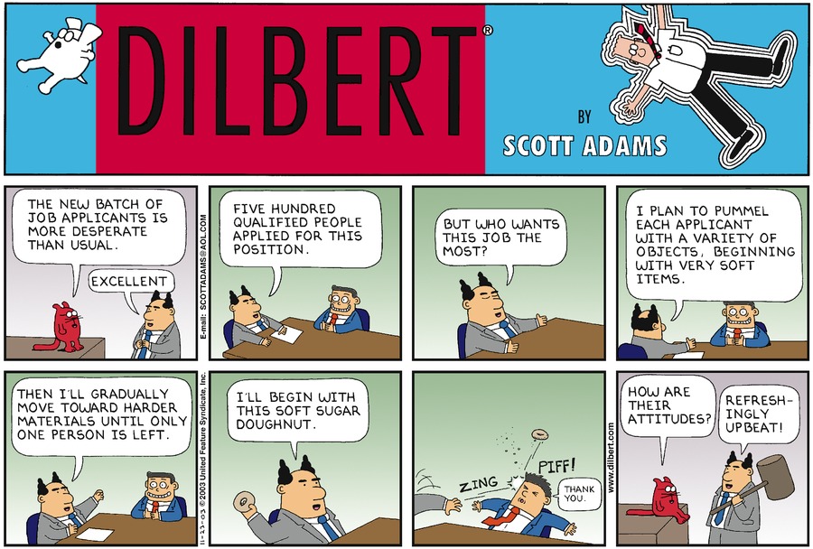 "The new batch of job applicants is more desperate than usual."