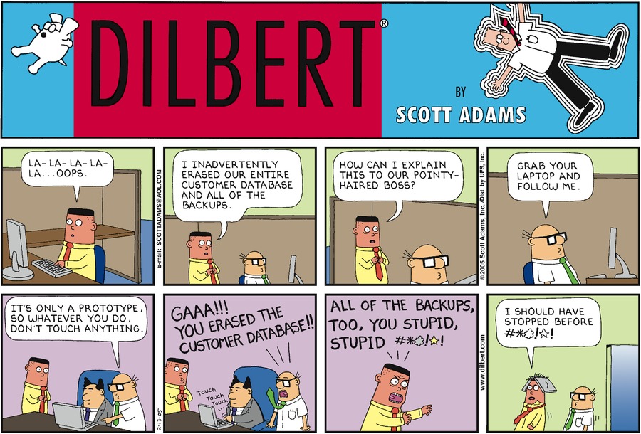 "La-la-la-la-la... oops." "I inadvertently erased our entire customer