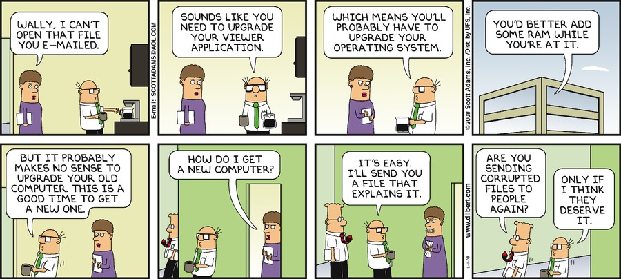 "Wally, I can't open that file you e-mailed." "Sounds like you need to
