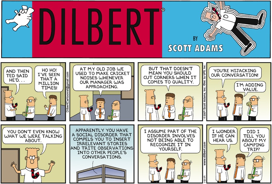 involves not being able to recognize it in yourself." Dilbert says, "I
