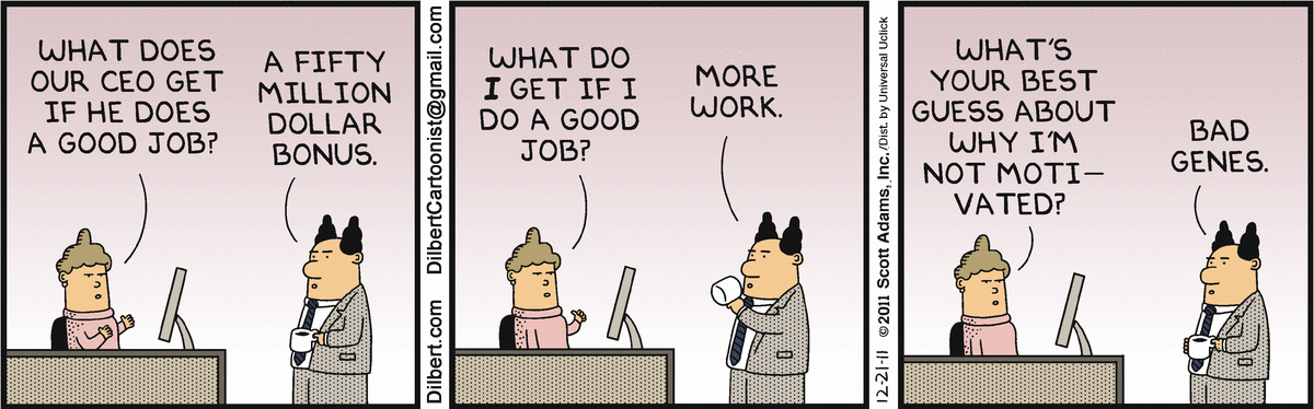Carol: What does our CEO get if he does a good job? Boss: A fifty
