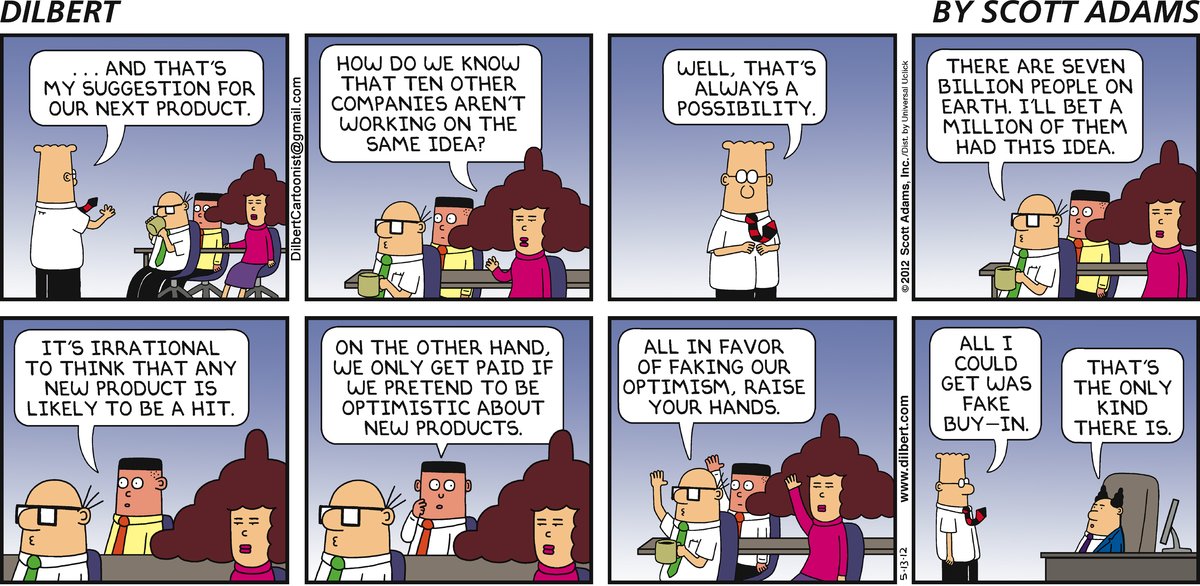 optimism, raise your hands. Dilbert: All I could get was a fake