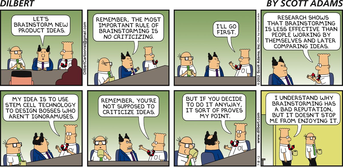 rule of brainstorming is no criticizing. Dilbert: I'll go first.