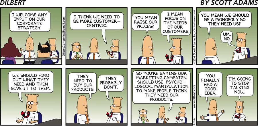 CEO: I welcome any input on our corporate strategy. Dilbert: I think