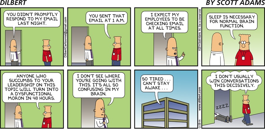 email at all times. Dilbert: Sleep is necessary for normal brain