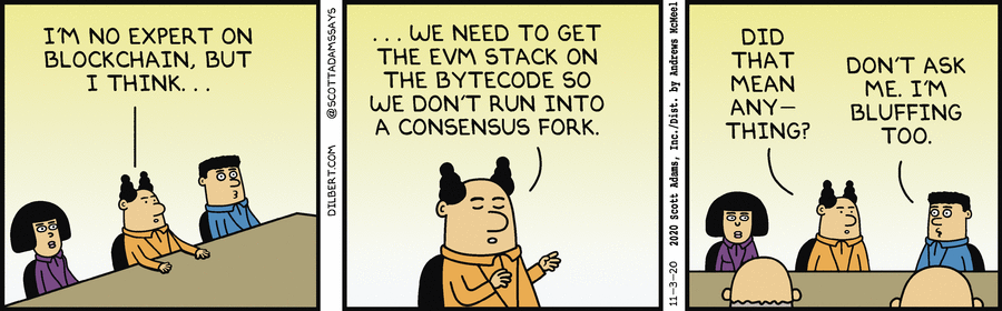 Dilbert - 2020-11-03 - Boss Bluffs On Blockchain