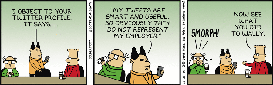 Dilbert - 2020-12-21 - Tweets Do Not Represent Employer