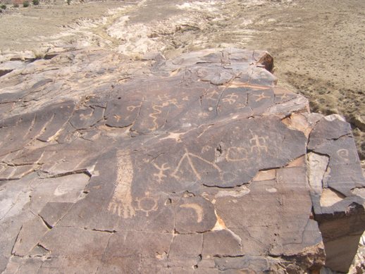 Nearby are some petroglyphs, on horizontal rock at the edge of