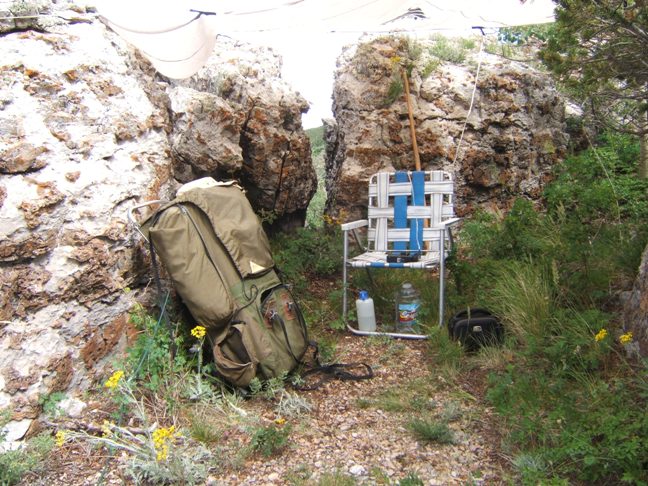 Here's the radio shack, under a Noah's Tarp in a sheltered cleft